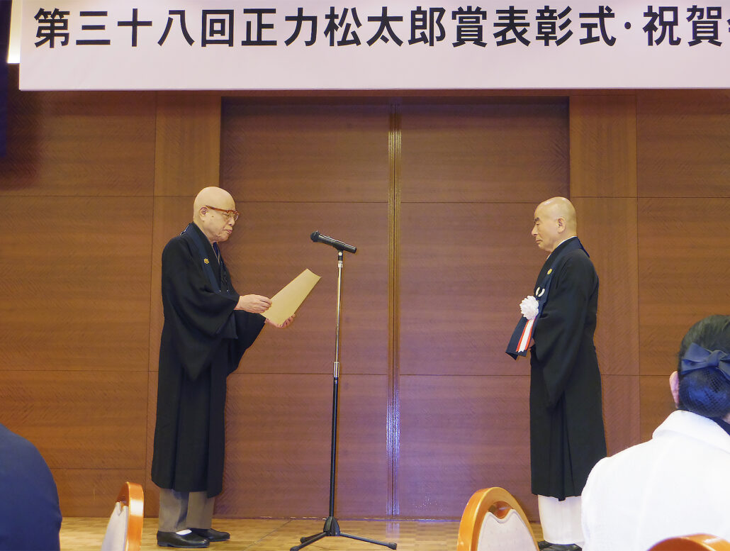 | 2014 | 5月、第38回正力松太郎賞本賞受賞(東京グランドホテル)。同月、韓国の大型貨客船「セウォル号」沈没事故犠牲者追悼のため檀園高校を訪問。 8月、日韓青少年交流10周年記念式典をソウル・奉恩寺で行う。 11月9日、吉岡秀人医師の講演会(妙法寺)。10日、ABA設立30周年・第38回正力松太郎賞本賞受賞記念行事・祝賀会を開催(ホテル日航福岡)。※下写真 |